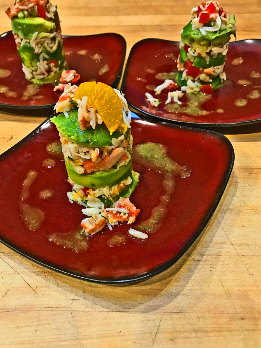 As requested, here is a Kitchen Class centered around seafood with Coconut Shrimp a must. It is timely as I’ve been working on recipes for the shrimp …both deep fried in the traditional way and also in the air fryer. Coconut Shrimp with a little sweet Orange/Chili Dipping Sauce is a great appetizer followed by a Crab Towers (layers of lettuce, avocado, shredded crab and a basil/shallot dressing). Sea Bass in a Marsala Mushroom Sauce served with Couscous with Toasted Coconut, Dried Cherries and Pecans make a lovely main course. You may have to wait a bit to have room for dessert but a Chocolate Mint Parfait will be worth the wait.